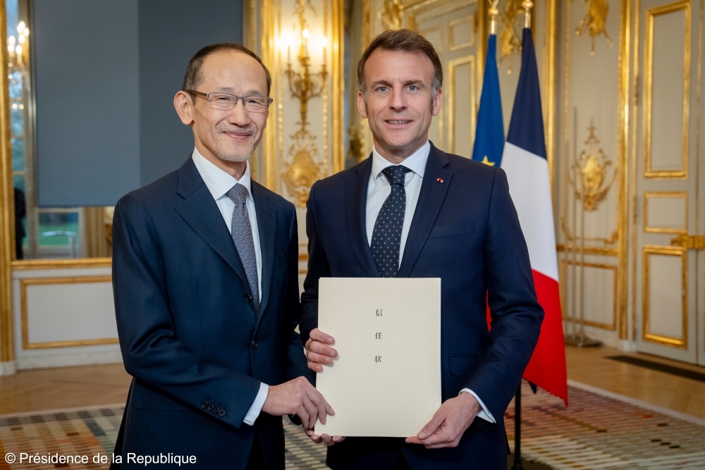 Rencontre au sommet Japon – France et dîner de travail (1er avril 2026) Huitième session des rencontres politico-militaires ministérielles (Réunion « 2+2 ») entre le Japon et la France (1er avril 2026) Rencontre des ministres des Affaires étrangères du Japon et de France (26 mars 2026) Remise des lettres de créance de l'ambassadeur SUZUKI au Président MACRON (25 mars 2026) Rencontre des ministres des Affaires étrangères du Japon et de France (12 novembre 2025) Envoi de dons suite aux séismes survenus dans la péninsule de Noto en 2024 : Cliquez ici Actualités go to list 2026/4/10 Situation récente en Israël et au Liban (déclaration du ministre des Affaires étrangères MOTEGI Toshimitsu) 2026/4/8 Déplacement en France de la ministre déléguée KUNIMITSU (compte rendu) Entretien téléphonique Japon - Iran Déclaration conjointe sur le conflit au Moyen-Orient 2026/4/7 Participation du vice-ministre parlementaire SHIMADA Tomoaki à la 32e cérémonie du souvenir du génocide des Tutsis au Rwanda Entretien téléphonique entre les ministres des Affaires étrangères du Japon et d’Égypte 2026/4/6 Entretien téléphonique des ministres des Affaires étrangères du Japon et du Pakistan Entretien téléphonique des ministres des Affaires étrangères du Japon et d’Iran 2026/4/2 Visite de la société Astroscale Holdings, Inc. par la Première ministre TAKAICHI et le Président MACRON Visite de courtoisie à la vice-ministre parlementaire ERI de Mme DAGASH-KAMARA, sous-directrice exécutive Partenariats et Innovation du Programme alimentaire mondial (PAM) go to list Annonces close Programme JET : recrutement 2026 Bourse de langue et civilisation japonaises 2026 (Avertissement) Événement culturel japonais suspect The Japan World Exposition 1970 Commemorative Fund – Appel à candidatures pour les projets de subvention 2026 (date limite : 30 septembre) Bourse d'études et de recherche du MEXT 2026 (inscriptions closes) STAGE BEYOND BORDERS – Sélection de spectacles vivants japonais JFF Theater - FREE STREAMING Japanese Movies/Videos Communiqué de l'Ambassade du Japon en France concernant l'envoi de dons suite aux séismes survenus dans la péninsule de Noto 18e édition du Festival du cinéma japonais contemporain KINOTAYO 160e anniversaire des relations Alsace-Japon (2023-2024) Foreign Policy News close Position du Japon sur la paix au Moyen-Orient NEW Illumination radar d’appareils des JASDF par des appareils militaires chinois 80e anniversaire de la fin de la Seconde Guerre mondiale : le Japon, huit décennies sur le chemin de la paix TICAD 9 (Neuvième Conférence Internationale de Tokyo sur le Développement de l'Afrique), le 20-22 août 2025 à Yokohama Position officielle du Japon sur l’Accord BBNJ Feuille de route sur la coopération franco-japonaise dans le cadre du partenariat d'exception (2023-2027) Ministry of Foreign Affairs news The safety of the discharge of ALPS treated water Point de vue du gouvernement du Japon Informations générales close Liste des organismes officiels et liens utiles Ambassadeur Hideo SUZUKI Messages de l'Ambassadeur Curriculum Vitae (CV) Réseaux sociaux de l'ambassade @AmbJaponFR @AmbJaponFR @ambjaponfr Publications en ligne Les Nouvelles du Japon Articles – ministres et ambassadeur Le Japon en France Web magazine "niponica" Web magazine KIZUNA en anglais WORLD EXPO 2025 Newsletter en anglais Vidéos close La politique étrangère